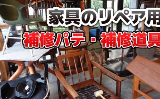 家具のえぐれ傷やへこみ傷の補修、アンティーク家具の補修に使用する補修パテ・補修道具を紹介。プロの修理業者も使用する道具・材料で低予算で導入できるものを中心に説明