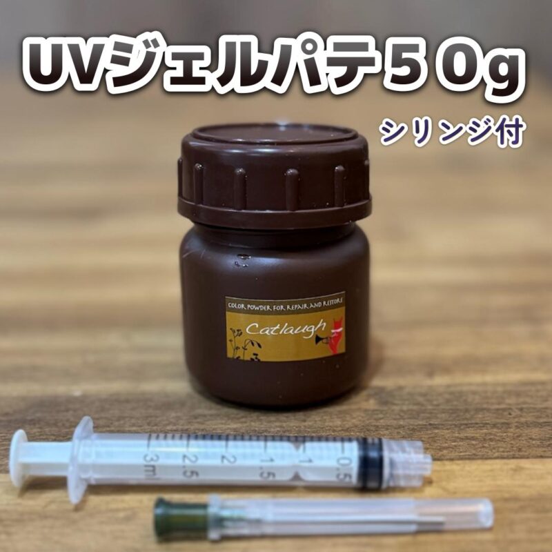 万能UVジェルパテ50g シリンジ付は小さくて深いビス穴・釘穴・節穴にも充填しやすいようにシリンジも付けています。